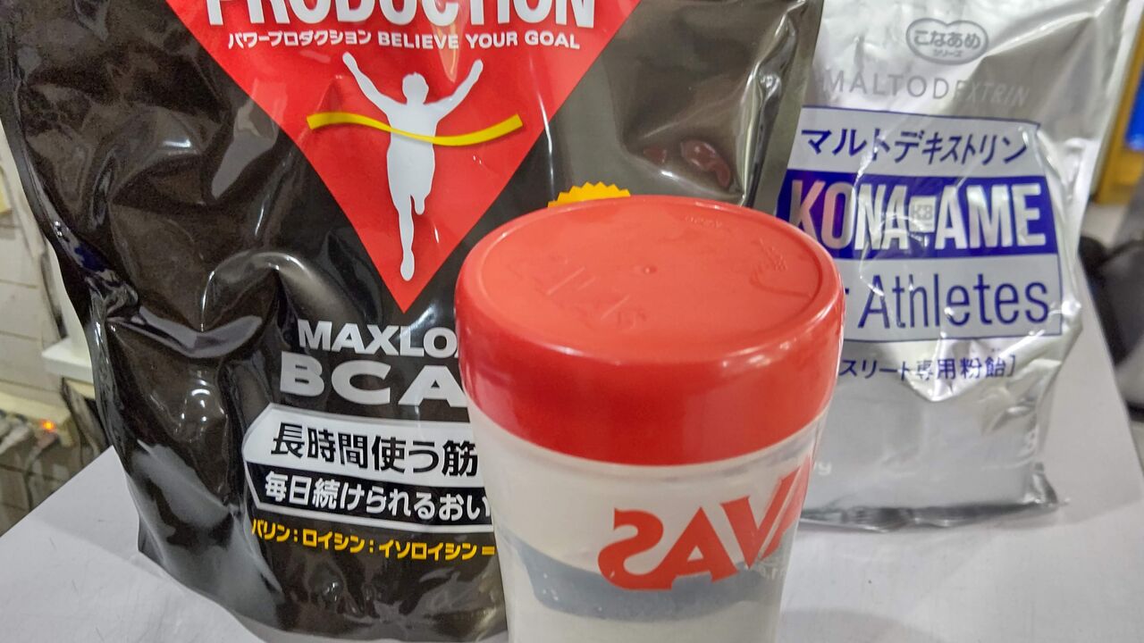 次にトレ中またはトレ後にマルトデキストリン(粉飴)またはフルーツジュース(糖質にして30~40g程度)を摂取。