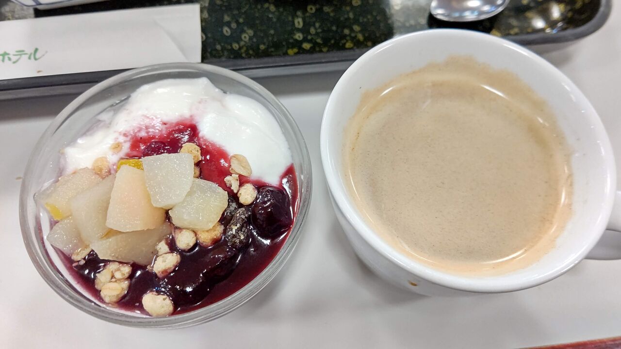 まずは龍泉洞温泉ホテルで朝食を食べているシーンです↓